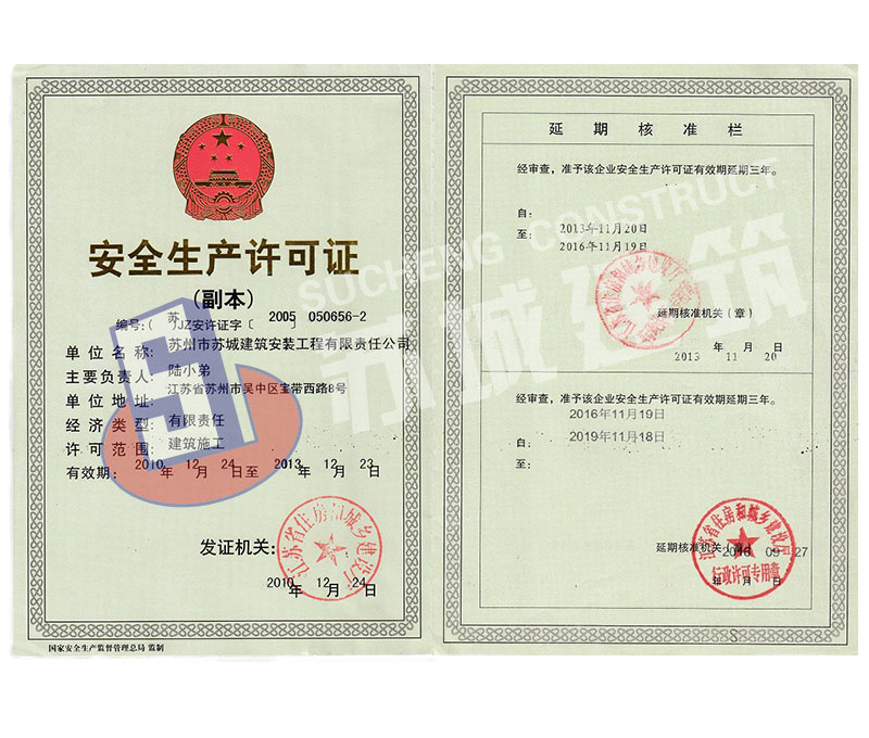 蘇州市蘇城建筑安裝工程有限責任公司,擁有主項建筑工程施工總承包一級資質,增項市政公用工程施工總承包二級資質和建筑裝修